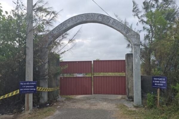 Chemmani, Sri Lanka — Less than 100 meters (328 ft) from a busy road, policemen stand on watch behind a pair of rust coloured gates that lead to a cemetery in the outskirts of Jaffna, the capital of Sri Lanka’s Northern Province.